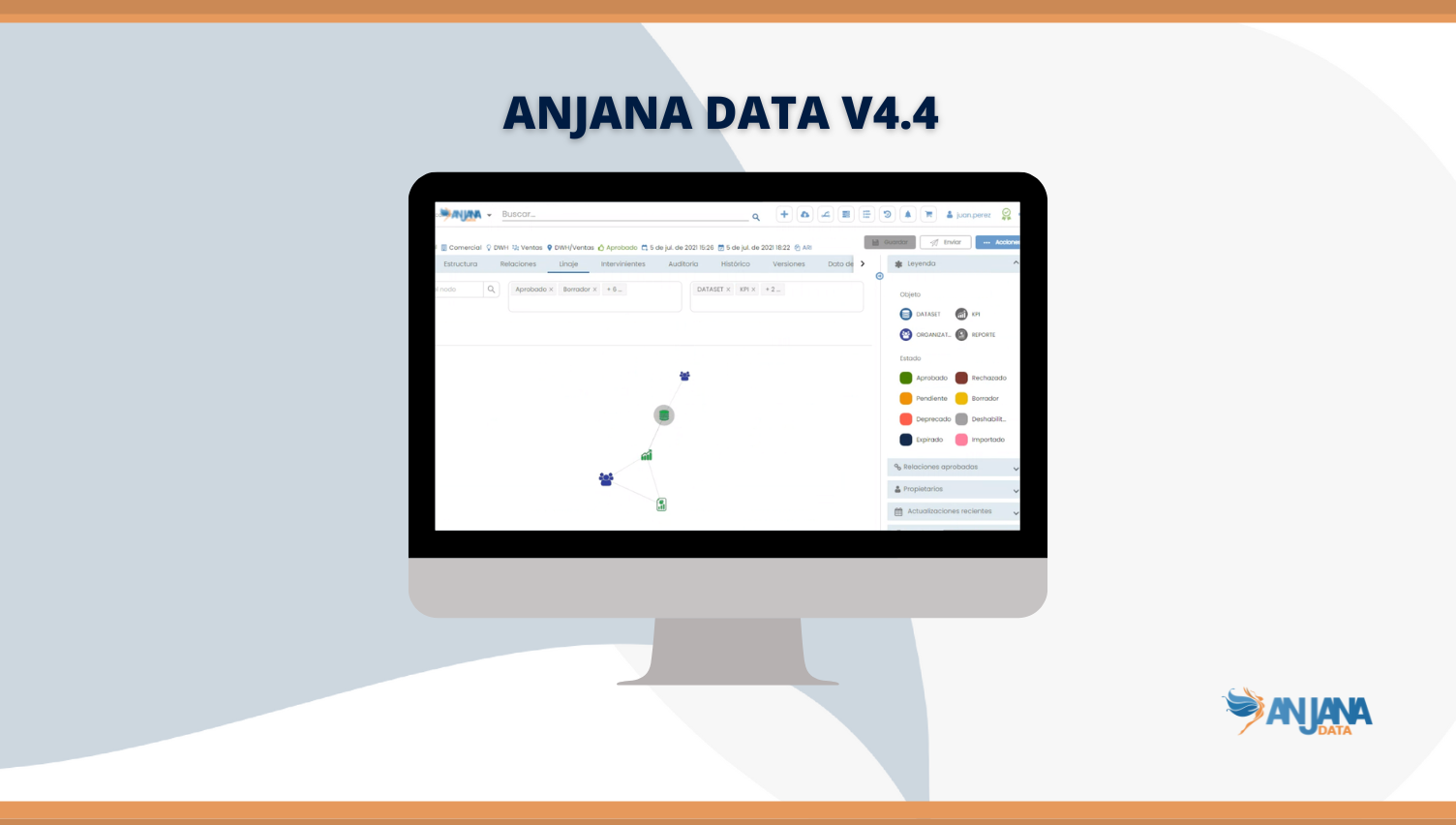 Anjana Data, la plataforma de Gobierno de Datos & Analytics más innovadora del mercado para la implantación de un gobierno flexible, presenta su nueva versión 4.4; la cual incluye novedades y elementos relevantes que enriquecen la experiencia de usuario, con nuevas capacidades de UX & UI, configuración de workflows avanzada y otros componentes en cuanto a la cobertura de funcionalidades.