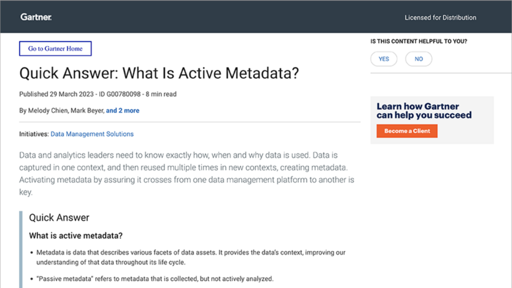 A continuación, desde Anjana Data os presentamos el documento de Gartner ‘Quick Answer: What Is Active Metadata?’, que aborda el concepto metadatos y su funcionamiento.