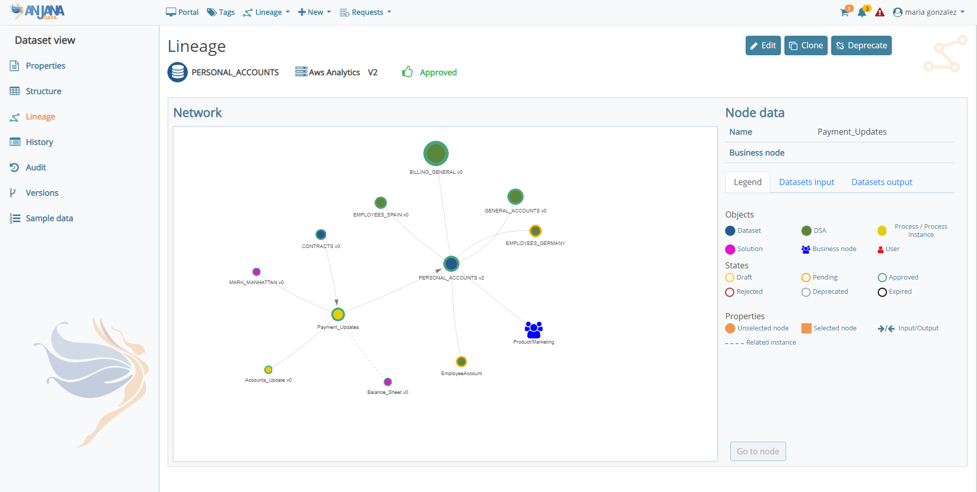 With the premise of delivering a version that is easy to use and that fulfils the function of being the central solution for data governance in an organisation, Anjana Data presents improvements in user experience and user interface through substantial changes in different screens of the application such as the Data Portal, object detail views, lineage graphs, workflow management and the Administration Panel.