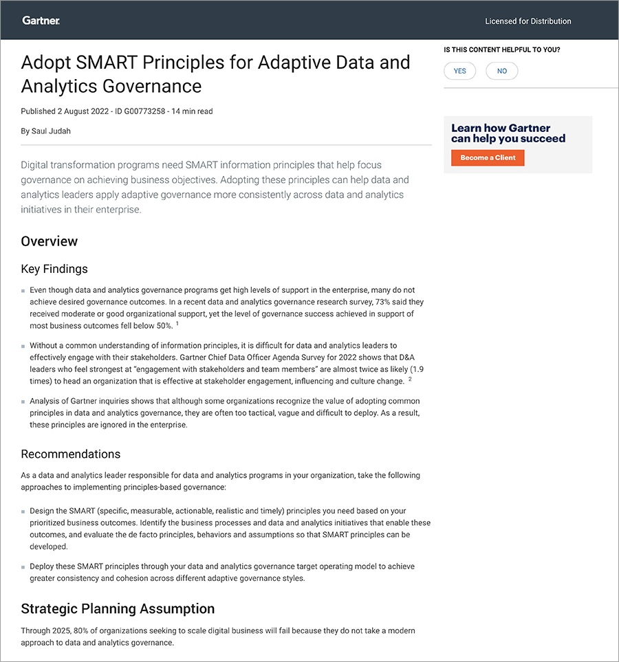 GARTNER® Adopt SMART Principles for Adaptive Data and Analytics Governance